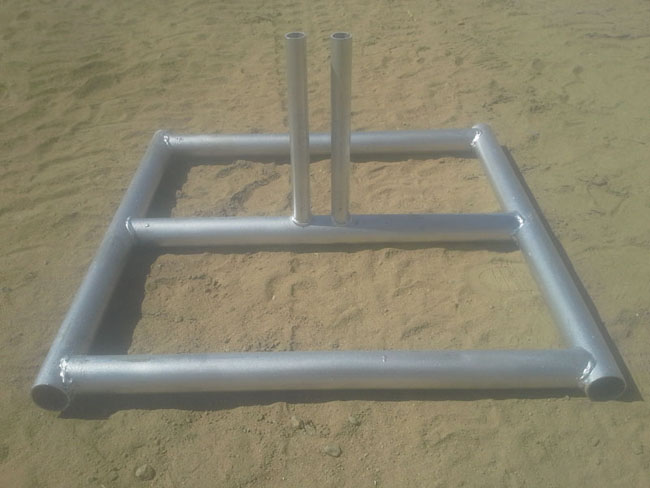 Our temp Stands illistrated above are designed to be the strongest in the fence industry. The entire frame is made with 1 5/8" tubing X .065 wall. The cross brace is made with a 1 5/8 pipe by 40wt. The pegs are 1' X 40wt pipe that has been drilled through holes on the cross brace and is welded top and bottom. This will cut down on your losses caused by damage. Unlike most we design our products not to fail at competitive prices.